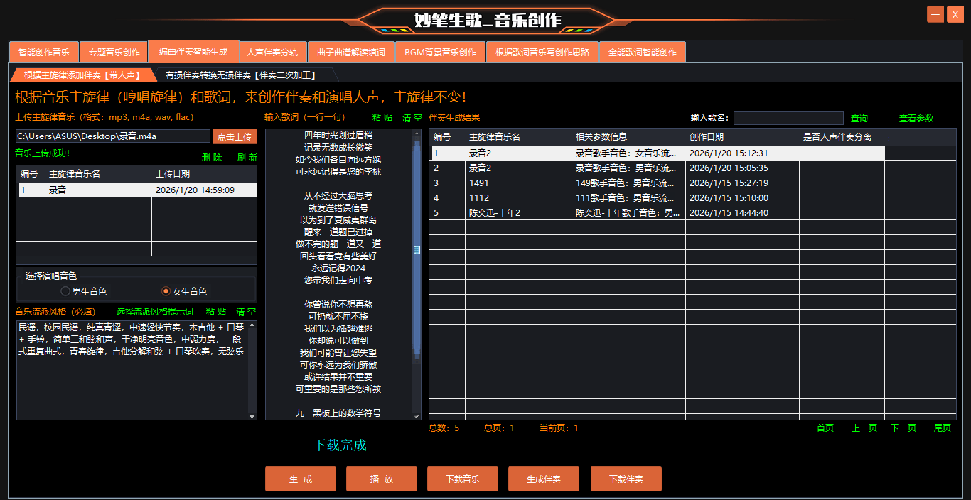 选择分歧的音乐元素,它还能为乐谱歌曲填词,